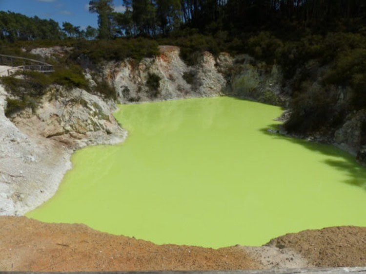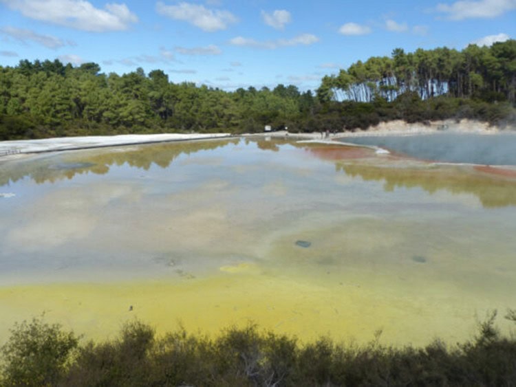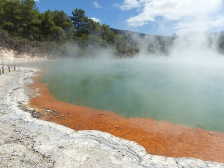 At the Champagne Pool, I ask the ranger guy if anyone has ever been injured at the site. He tells me that back in the 1960’s a local teacher visited the site with his dog. In those days, a fence did not separate the walkway from the Champagne Pool. The man’s dog ran into the pool and the man ran after the dog to save it.