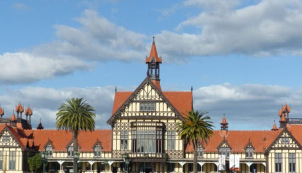 We start by touring the grounds of the Rotorua Museum—a fabulous, Tudor-style concoction that once housed the hot spring baths that attracted visitors from all over the world. The grounds also include a rose garden.